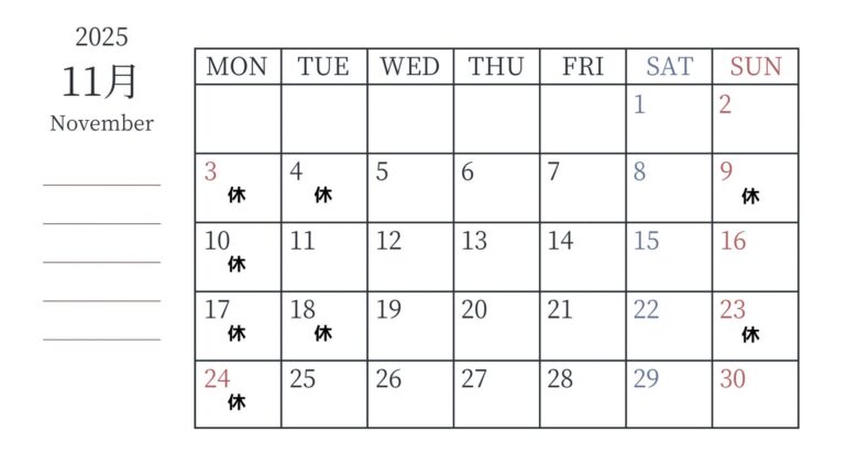遅れてしまい大変申し訳ございませんが、11月の営業のご案内となります。